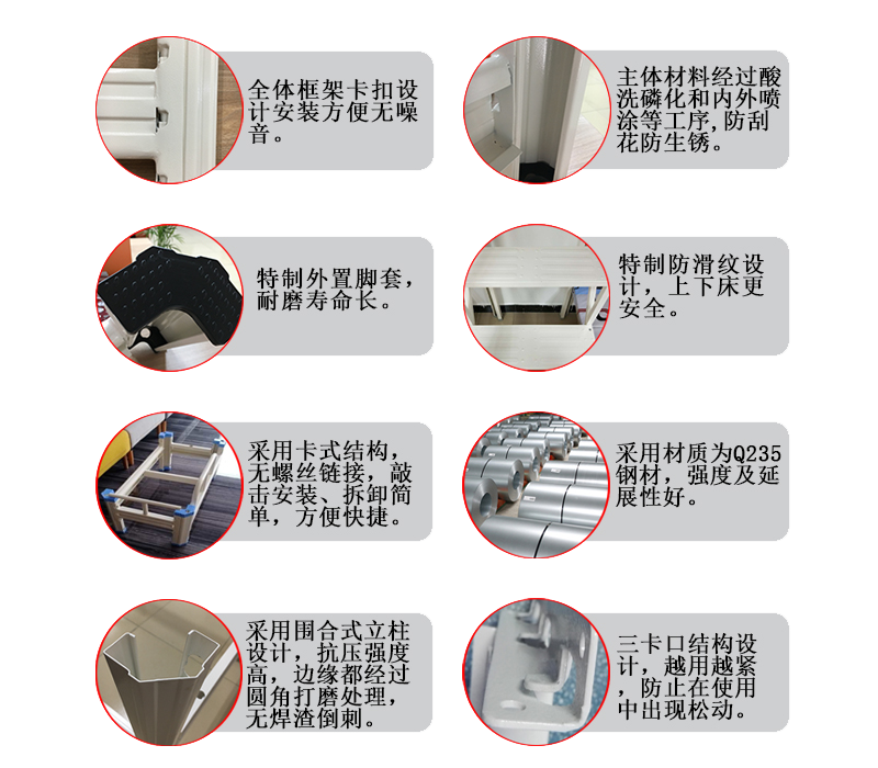 床架結構穩固不易變形,承重力好,床體承重力達500KG 根據人體工程學設計,上下舒適自如!
